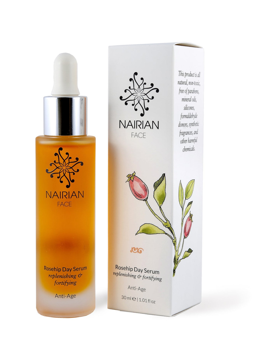 Nairian’s luxurious Rosehip Day Serum replenishes glow and fortifies the skin with a powerful mix of anti-aging vitamins and compounds.